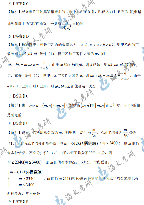 2025考研管理类综合能力真题答案解析